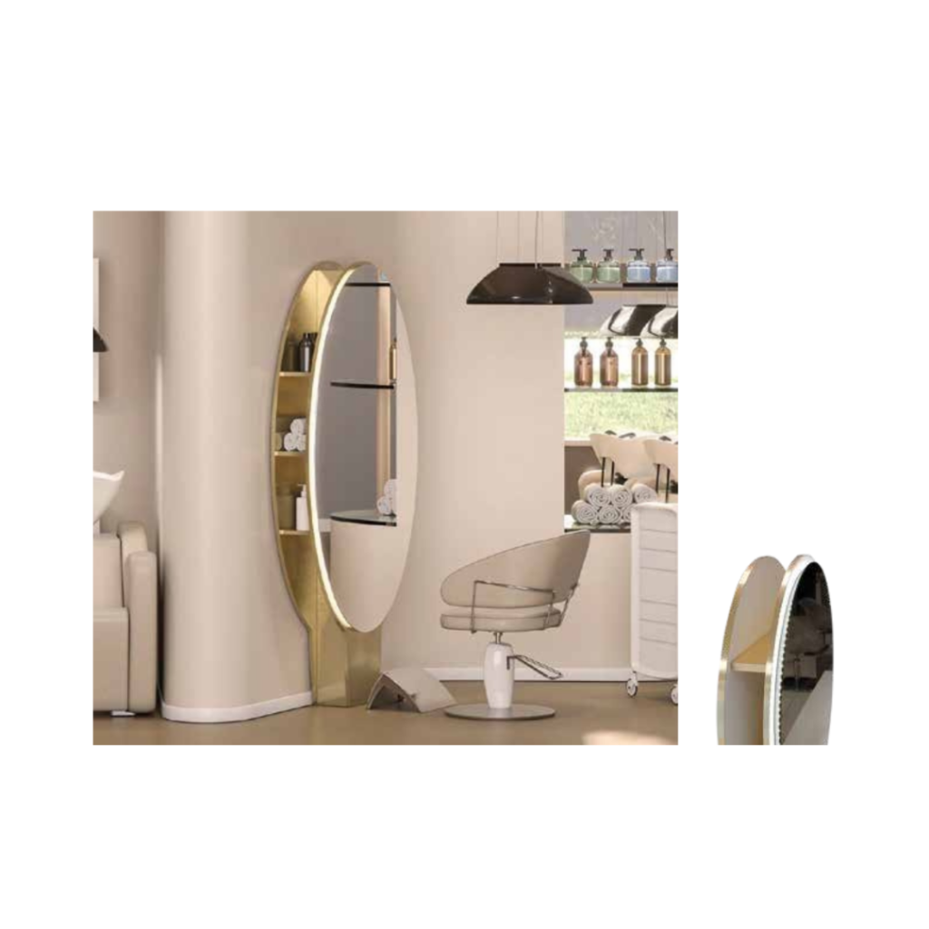 Aurora este un post de lucru profesional pentru coafor, cu design elegant și detalii rafinate, creat pentru saloane care își doresc un impact vizual premium. Oglinda cu formă ovală și rama decorativă adaugă personalitate spațiului, iar structura solidă asigură utilizare zilnică sigură.