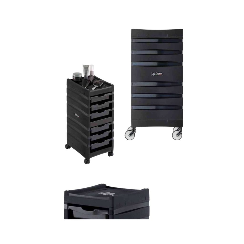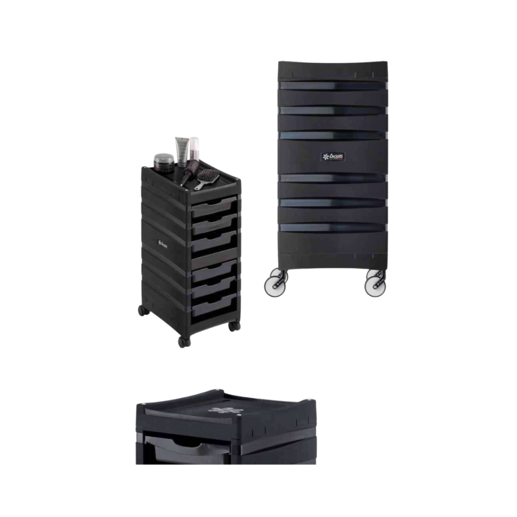 Building este un cărucior profesional de lucru, conceput pentru saloane de coafură și beauty care au nevoie de organizare eficientă, mobilitate și acces rapid la instrumente și produse. Structura sa verticală și compartimentarea inteligentă permit depozitarea ordonată a accesoriilor, contribuind la un flux de lucru clar și eficient.