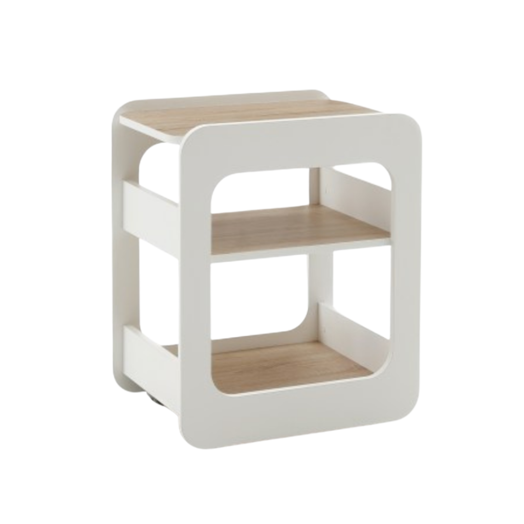 Carrello Creo este un cărucior realizat din nobilitat alb opac, cu polițe disponibile în mai multe finisaje. Polita superioară poate fi poziționată la nivelul structurii, ca blat de lucru.