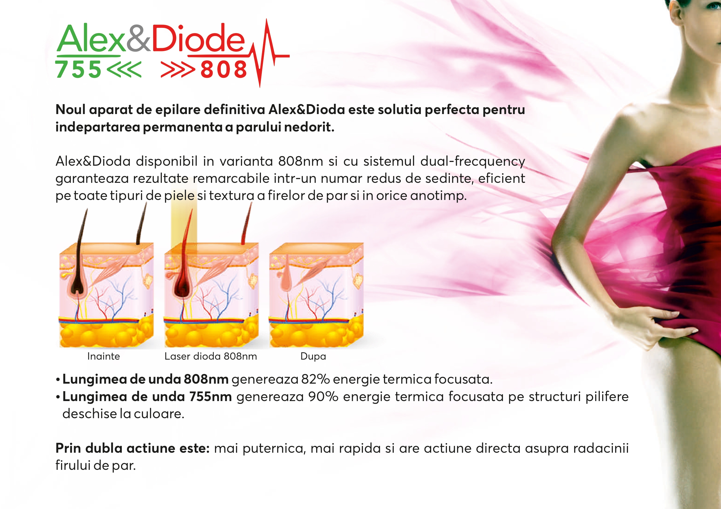 Descoperă eficiența reală a tehnologiei Dual Frequency cu Eximia Alex & Dioda – epilare definitivă sigură, rapidă și confortabilă.