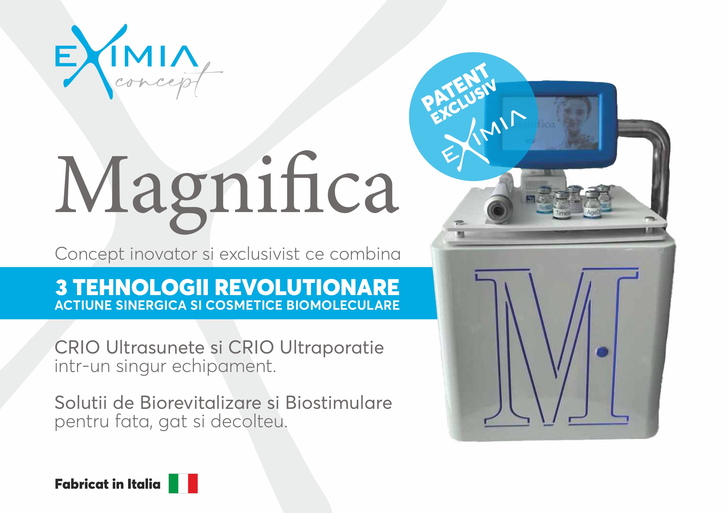 Eximia Magnifica este un sistem inovator și exclusivist, conceput pentru biorevitalizare, regenerare și rejuvenare facială complet non-invazivă.