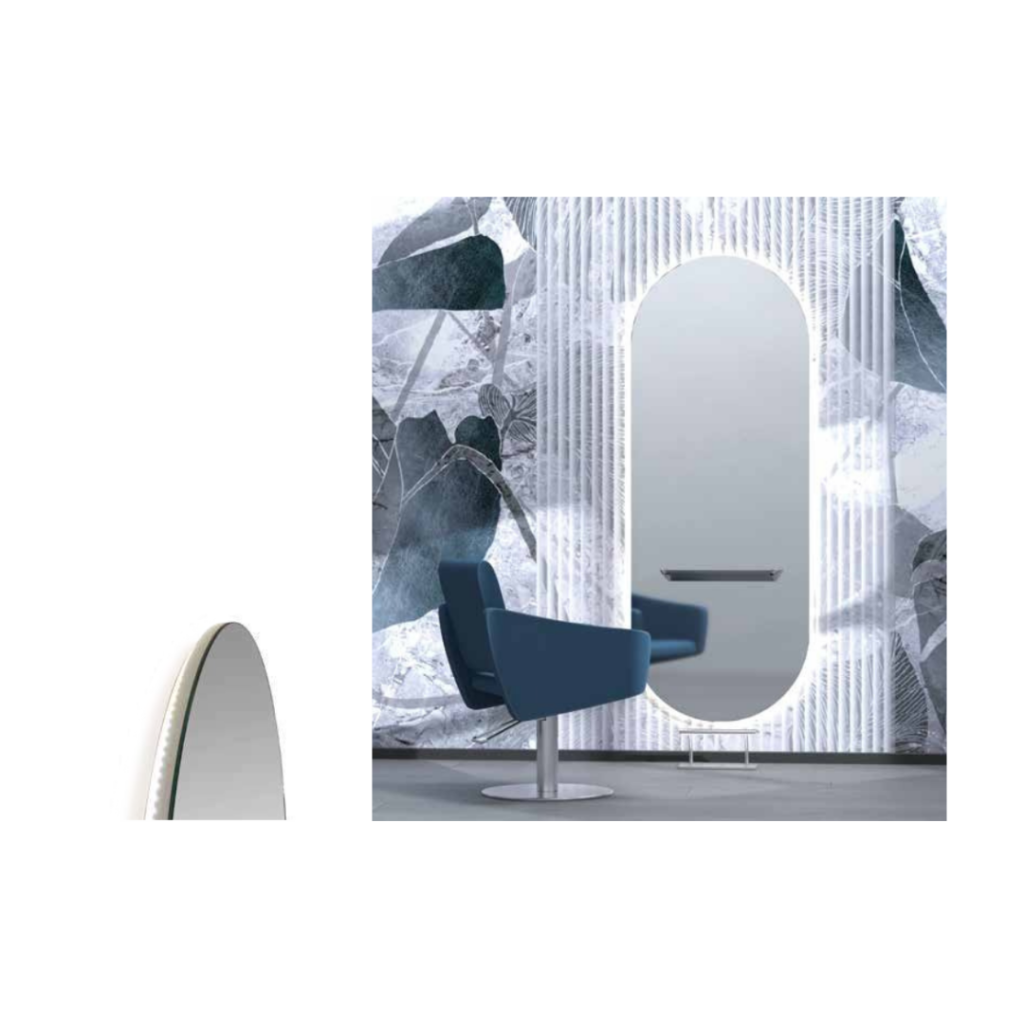 Glam este un post de lucru profesional pentru coafor, cu design elegant și impact vizual puternic, creat pentru saloane care vor să iasă în evidență. Oglinda cu formă alungită și iluminare integrată creează un cadru modern, iar polița din aluminiu adaugă funcționalitate zilnică.