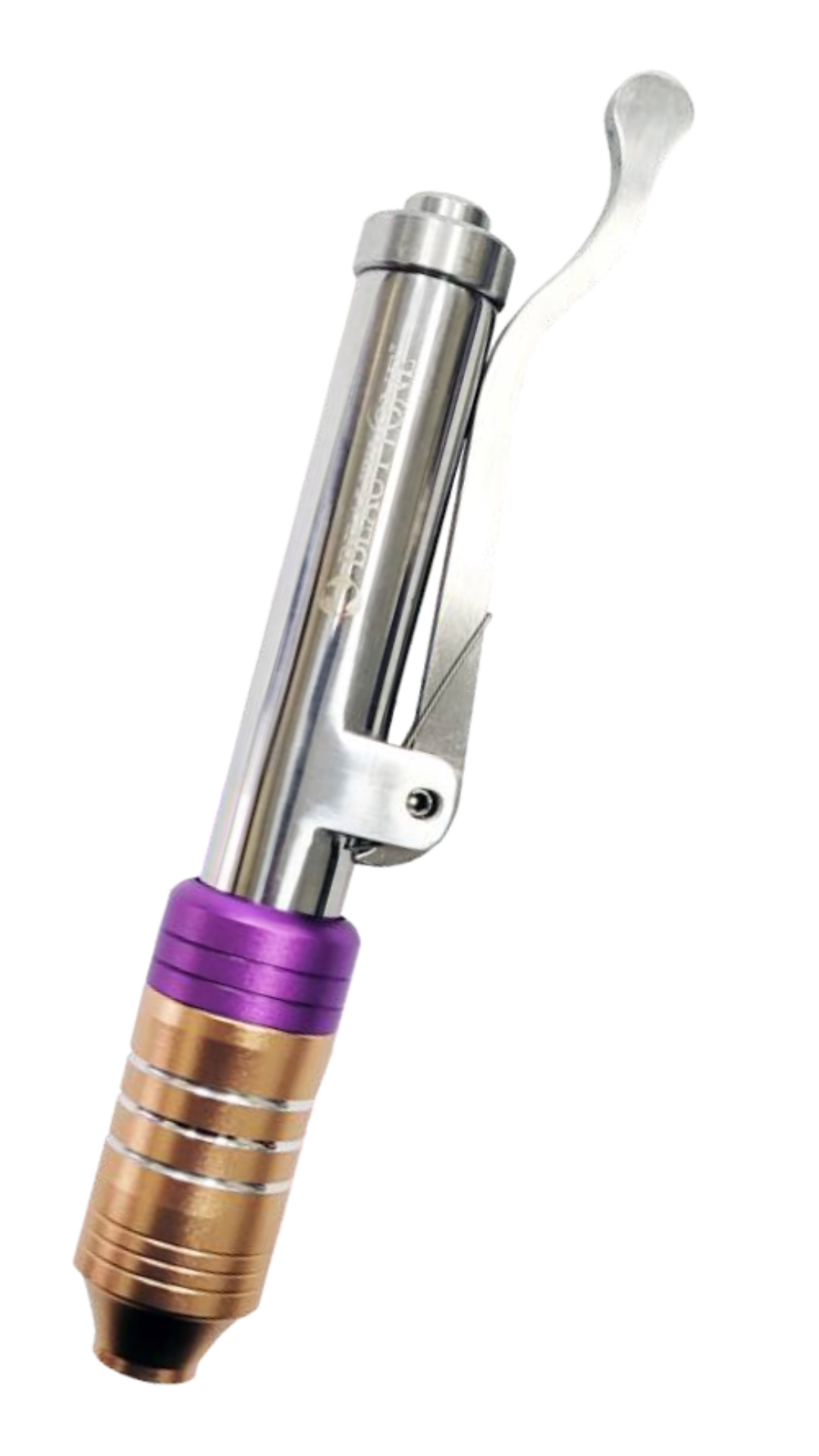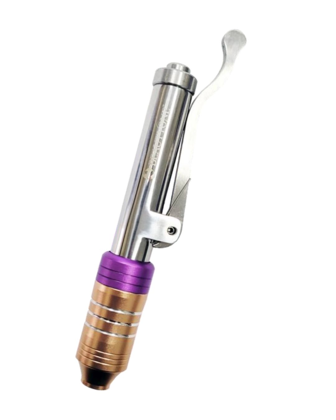 - Dispozitiv cu arc de presiune, care eliberează substanța în epiderm și dermul superficial, fără risc de ocluzie sau lezarea vaselor.