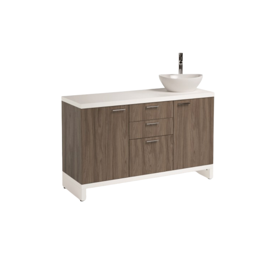Mobile Et-no 1350 H2O combină depozitarea generoasă cu funcția de spălare. Este dotat cu două uși laterale, sertare centrale și chiuvetă integrată.