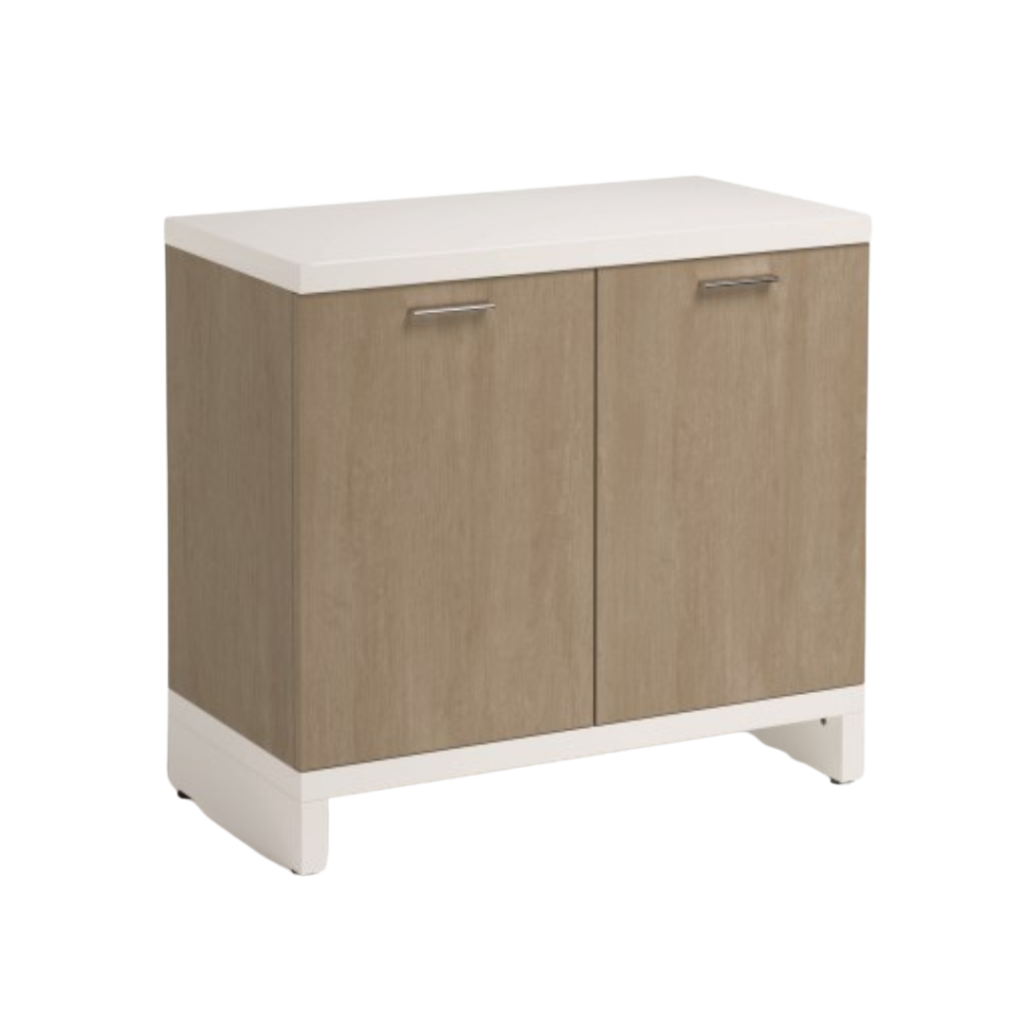Mobile Et-no 900 este o piesă de mobilier cu două uși și rafturi interioare, cu bază și blat alb opac și structură disponibilă în mai multe finisaje. Este gândit pentru organizare practică în spații profesionale.