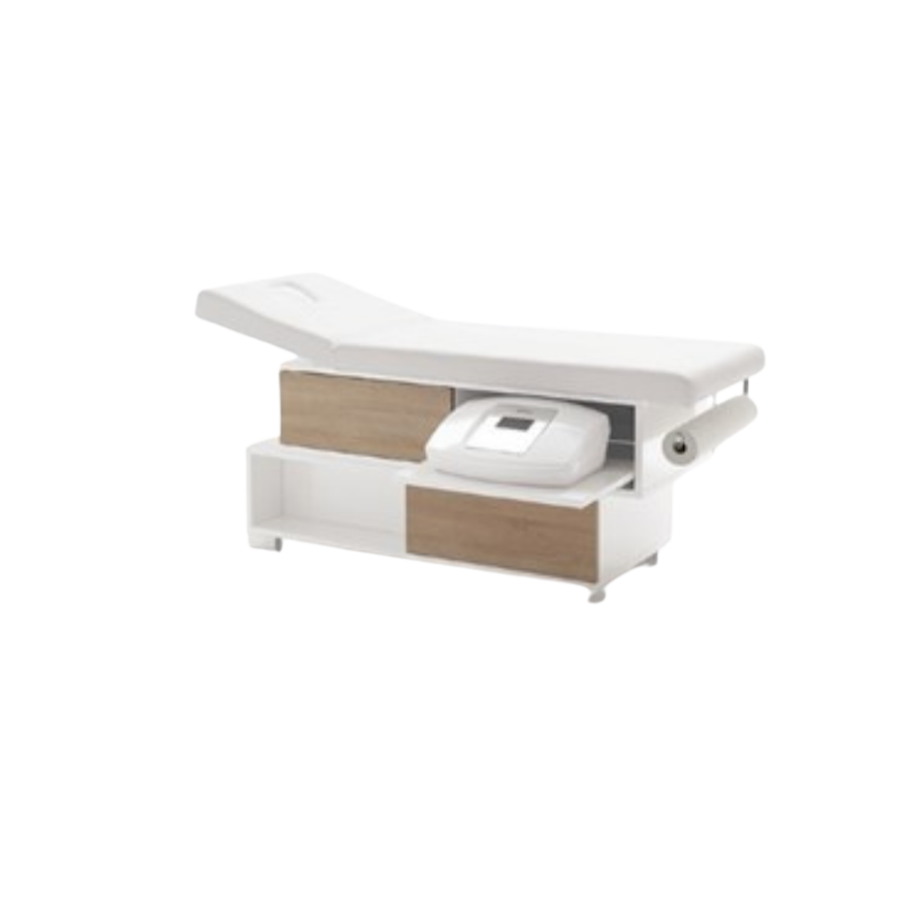 Lettino Swing este un pat profesional fix, cu un design modern și compact, dedicat centrelor estetice care apreciază liniile curate și eficiența în utilizare. Structura sa este gândită pentru a oferi stabilitate și accesibilitate, fiind ideal pentru tratamentele care necesită mișcare liberă în jurul patului.