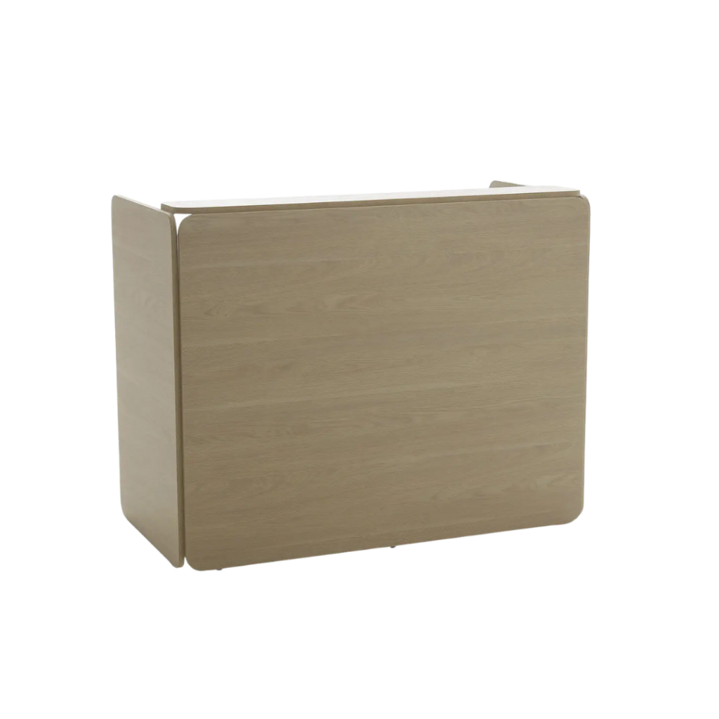 Reception Nat este un birou de recepție realizat din lemn nobilitat, disponibil în mai multe finisaje de lemn și alb opac. Este dotat cu sertar cu cheie, spații deschise de depozitare, trecere cabluri și blat superior de lucru.