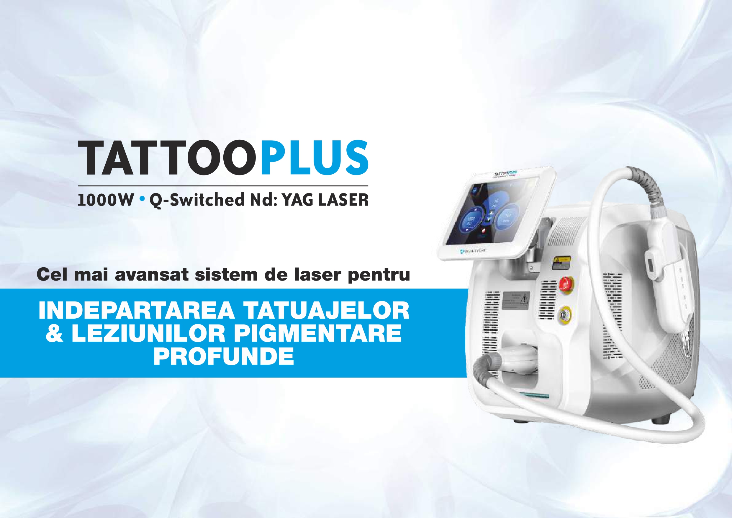Tattoo Plus este un sistem laser profesional de ultimă generație, proiectat special pentru îndepărtarea tatuajelor, eliminarea leziunilor pigmentare profunde și rejuvenare facială prin peeling cu carbon. Tehnologia Q-Switched Nd:YAG permite fragmentarea particulelor de pigment în nanoparticule, care sunt apoi eliminate natural de organism, fără a afecta țesuturile sănătoase.